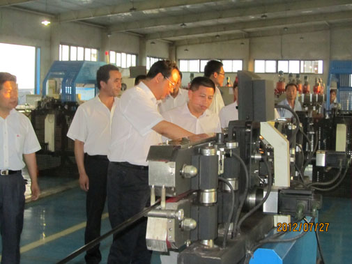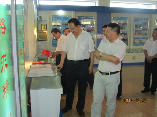 皮建华处长在集团公司董事长王栋等高管陪同下在公司展厅参观考察