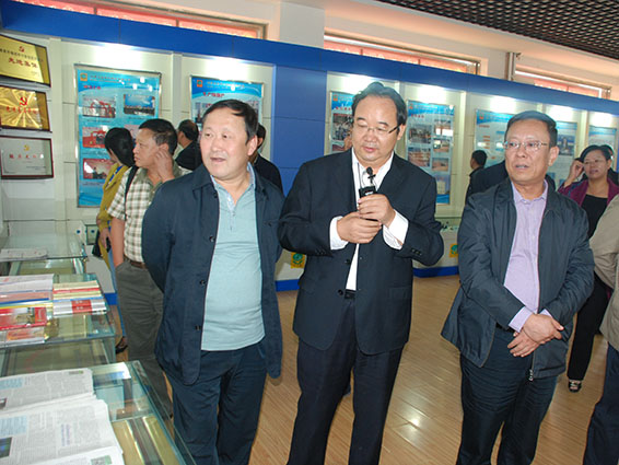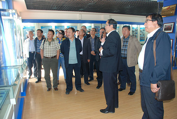 阿拉善盟考察团一行在大禹节水公司展厅了解公司发展历程、企业文化、荣誉资质、国际交流与考察等情况