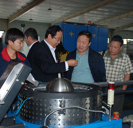 集团公司董事长王栋向阿拉善盟考察团介绍滴灌管(带)生产工艺