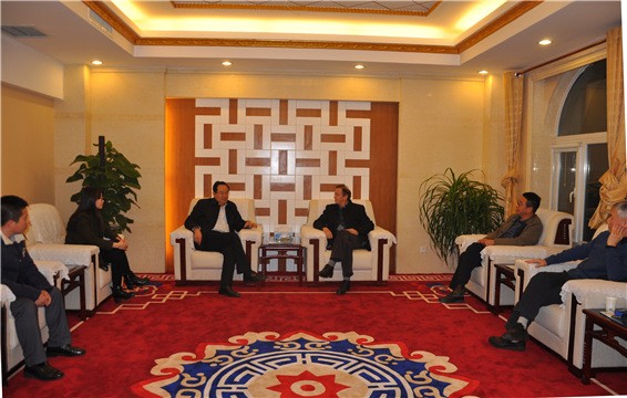 大禹节水集团董事长王栋、副董事长王冲、大禹研究院副院长战国隆与以色列施拉特公司水处理专家、农业和清洁技术经理 Rafi Nevo先生,以色列施拉特中国公司CEO畅波先生会谈