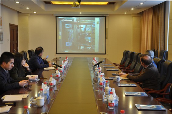 大禹节水集团公司财务总监李福武、大禹研究院副院长战国隆等公司领导陪同以色列施拉特公司水处理专家、农业和清洁技术经理 Rafi Nevo先生,以色列施拉特中国公司CEO畅波先生在会议室观看公司宣传片