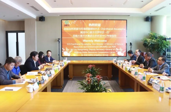 2024年9月25日,老挝自然资源与环境部副部长查特奈特·布阿拉法率团在长江水利委员会澜湄水资源合作中心副主任罗祥生、工程师石昕颜的陪同下莅临大禹节水集团北京研发中心考察调研。大禹节水集团董事长王浩宇、高级副总裁崔静、大禹慧图集团副总裁兼总工程师唐宗仁等陪同考察。