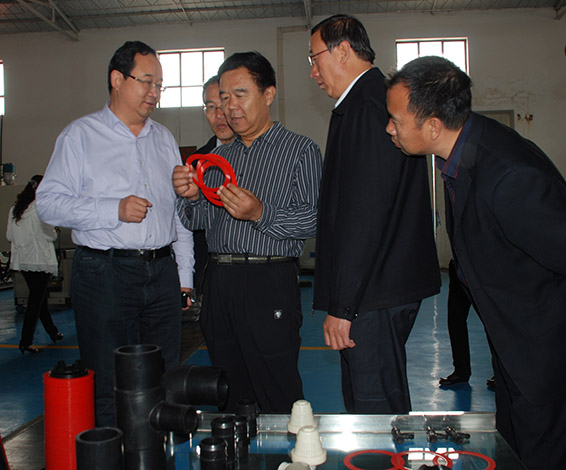 甘肃省政协副主席黄选平率领省经济转型发展问题研究专题调研组在大禹节水集团了解公司研发生产的各类高效节水灌溉产品
