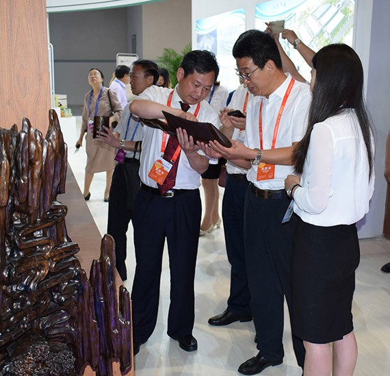 渝洽会开幕式后,大禹节水集团公司党委书记王冲应邀参观了梁平区政府以打造"中国西部(重庆)塑料生态产业园"为主题的会展区。