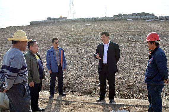 在酒泉公司"百日攻坚"行动重点项目肃州区2017年高效节水灌溉项目三墩片区、银达片区及嘉峪关市2017年高效节水灌溉项目工地,总裁谢永生现场慰问了正在水中进行管道安装作业的技术人员,听取了项目经理、技术负责人就工程进展情况得汇报,查看了项目整体建设及施工进度情况,对项目建设中存在的有关问题进行了询问,并就项目建设中遇到的困难现场进行了协调解决。