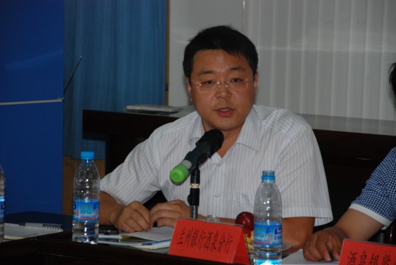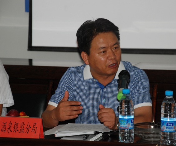 中国银监会酒泉监管分局局长李福泉在座谈会上发言