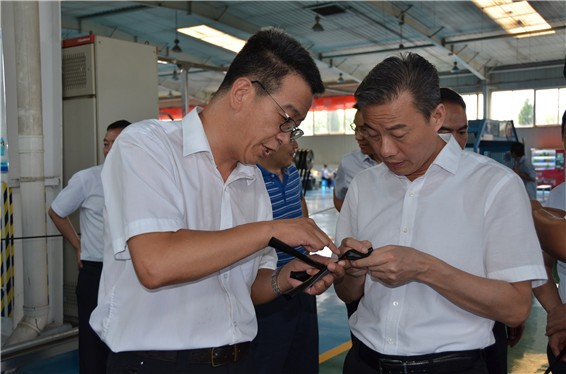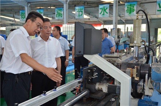 吴盛海局长一行在大禹节水公司滴灌生产车间,了解公司产品研发、生产情况