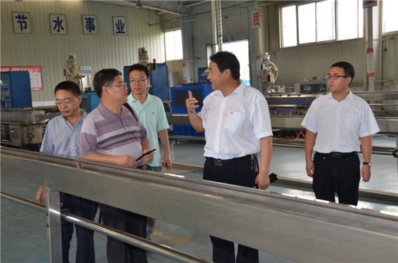 8月10日,甘肃省水利水电学校校长陈军武、招生就业办主任许贵之、教务科副科长王朝林一行莅临大禹节水(天津)有限公司参观考察,大禹节水集团股份有限公司董事长王栋、总工程师杨正武、大禹节水(天津)有限公司常务副总经理潘钰等公司领导陪同参观考察。