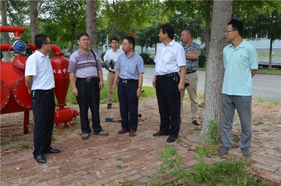 陈军武校长一行先后来到大禹节水研究院实验室、公司生产车间,喷灌机实验田、过滤器展示区现场参观考察。在实验室,陈军武校长一行详细了解了实验室各种检测仪器及其实验检测方法,大禹节水研究主任冯厚军向各位领导进行了介绍,并重点介绍了“精量滴灌”的相关技术。该项技术荣获“2015年度国家科技进步二等奖”,极大的解决了多年来滴灌技术的瓶颈,得到了各位领导由衷的赞扬;在各生产车间,陈军武校长一行边走边看,不时停下来询问相关情况,常务副总经理潘钰一边向各位领导介绍公司研发生产的各类节水灌溉产品,一边认真回答了相关领导的提问。