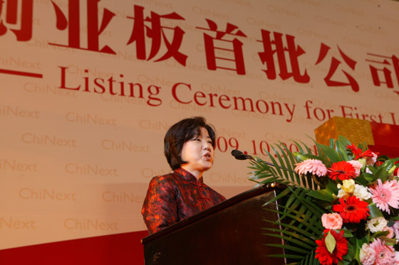 深圳证券交易所总经理宋丽萍宣布创业板首批公司上市仪式正式开始。