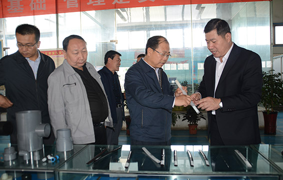 集团公司总裁谢永生向调研组一行介绍公司滴灌管产品生产工艺