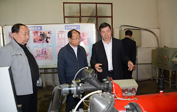 集团公司总裁谢永生向调研组一行介绍公司全自动施肥过滤器产品