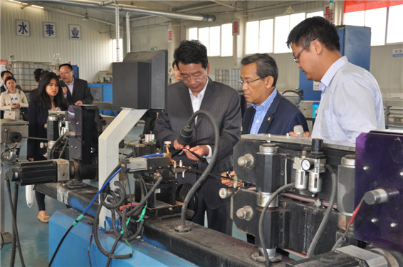 大禹节水(天津)有限公司董事长王冲陪同柬埔寨国家副首相、奉辛比克党主席盖博拉斯美一行在滴灌带车间参观考察