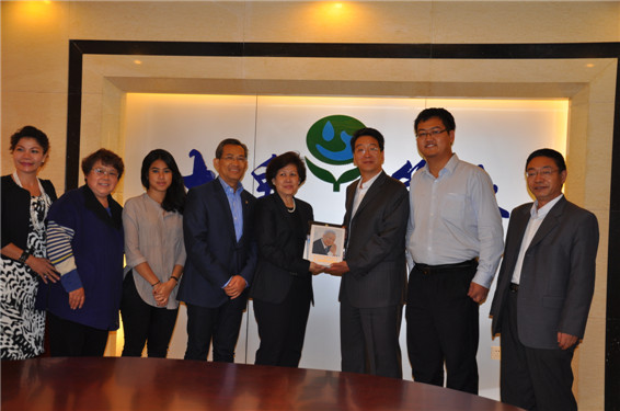 大禹节水(天津)有限公司董事长王冲等公司领导陪同柬埔寨盖博拉斯美首相一行合影留念