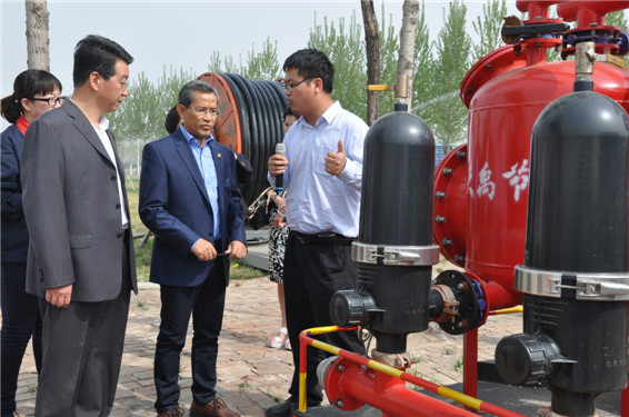 大禹节水(天津)有限公司董事长王冲陪同柬埔寨副首相盖博拉斯美一行了解滴灌带实验田情况