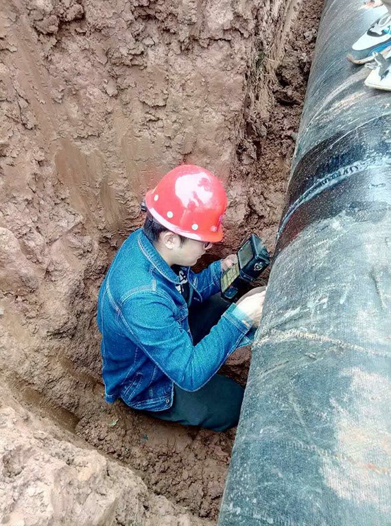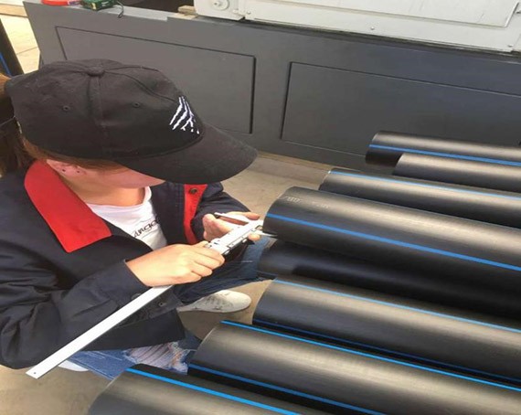 ▲精确测量,力保每一件管材都高规格、精尺寸,为一线施工立保障