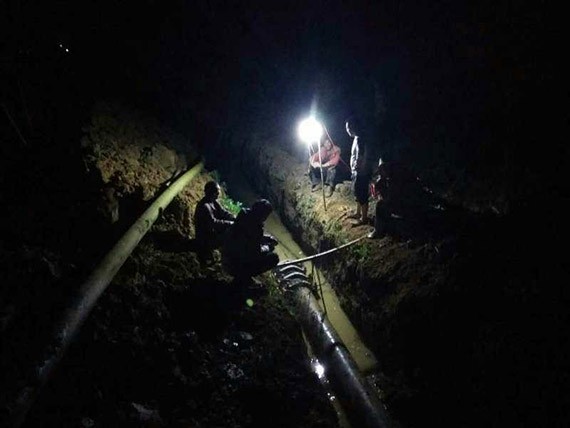 ▲西畴项目部同事正在调试维修设备,确保滴水不漏