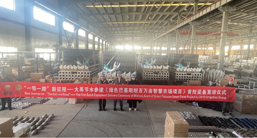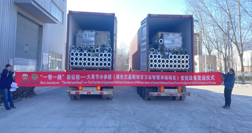 1月23日,大禹节水集团参建的《绿色巴基斯坦百万英亩智慧农场项目》首批设备完成装箱起运。大禹巴基斯坦独家经销商总裁与大禹节水国际事业部副总经理符帅先生参加本次发运仪式。