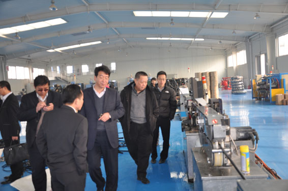 美国加利福尼亚州现代建筑材料公司总裁大卫.黄先生一行集团公司副董事长王冲、大禹节水(天津)有限公司总经理张学双的陪同下在天津公司PVC/PE车间参观考察