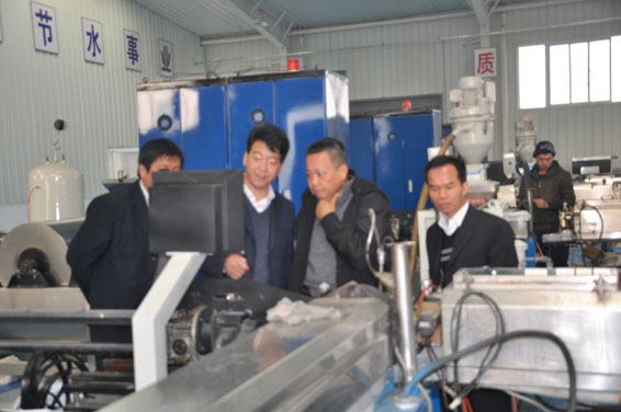 在集团公司副董事长王冲的介绍下,黄总对我公司总体概况、生产规模、产品性能及发展前景给予充分肯定,在参观了我公司滴灌生产线后称:“就目前公司的生产规??梢源锏绞澜绲谝弧?。随后双方在热烈友好的气氛中就下一步开拓海外市场等相关方面的业务进行了会谈。