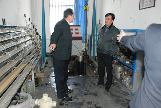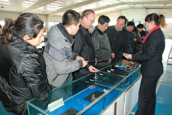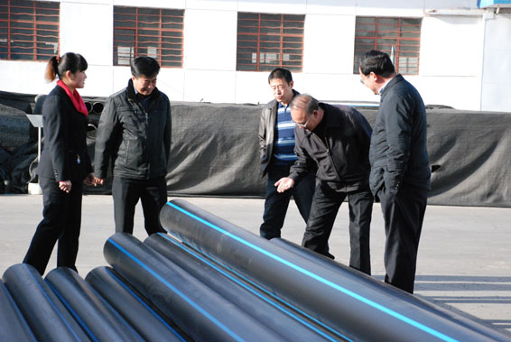 在集团公司董事长王栋的陪同下,考察团一行先后来到公司展厅、滴灌车间、PVC/PE车间、施肥过滤器车间、管件车间及实验室参观考察。在公司展厅,考察团一行从公司发展历程、企业文化、荣誉资质、国际交流与考察以及近几年各界领导对公司的关怀等方面对公司有了全面的了解,集团公司董事长王栋还特别向考察团一行介绍了大禹集团下设各子(分)公司的基本情况;在各生产车间,考察团一行对公司生产的高效节水灌溉产品进行了一一了解,并不时与集团公司董事长王栋交流,询问现代化高效灌溉及灌溉产品方面的问题;在大禹集团实验室,考察团一行仔细了解了针对原料和成品进行实验的各类仪器;参观考察之后,甘肃省引洮工程建设管理局考察团一行对大禹集团生产的各种现代化高效节水灌溉产品给予了充分肯定和高度评价。