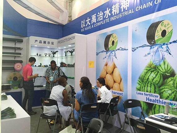 大禹节水集团展位位于广交会第一期 A区4.0工程农机展区,包括"精量滴灌关键技术与产品研发及应用"项目在内的最新节水灌溉产品与技术在这里集中进行了展示。由大禹节水集团领衔的合作研发项目"精量滴灌关键技术与产品研发及应用"荣获2015年度国家科技进步二等奖。展会现场,大禹节水集团让来访客户全面地了解了滴灌系统运行的全过程,公司产品与技术吸引了尼泊尔、印度、泰国、委内瑞拉、巴西、西班牙、危地马拉、伊朗、俄罗斯、刚果等五大洲10多个国家客户前来咨询并达成多项合作意向。