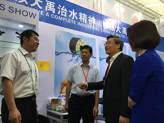 10月17日上午,甘肃省委常委,省人民政府副省长李荣灿、甘肃省商务厅副厅长马坤一行莅临大禹节水集团公司展位参观考察。大禹节水集团公司总裁谢永生向李荣灿副省长一行介绍了公司外贸情况及发展趋势。李荣灿对公司给予了高度评价,并提出殷切希望,希望公司认真领会习近平总书记和李克强总理的批示,把"引进来"和"走出去"紧密结合,加强自营产品的出口力度。