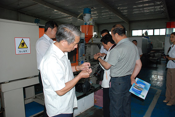 省老科协调研组一行在大禹节水酒泉公司滴灌车间了解滴头产品