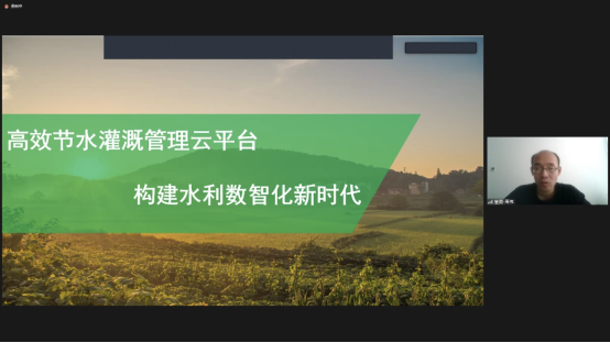 大禹慧图科技软件交付中心副总经理周伟介绍了SaaS高效节水灌溉管理云平台,慧图SaaS云平台结合涉水业务特点,以透彻感知、全面互联、深度挖掘、智能应用、泛在服务、综合决策为基本特征,尽一切力量优化业务流程、创新工作模式,做到“以水为媒,让行业互联”,推动涉水行业管理模式的转型升级,促进涉水业务管理由粗放式向精细化、由经验型向标准化、由被动服务向主动服务的转变。