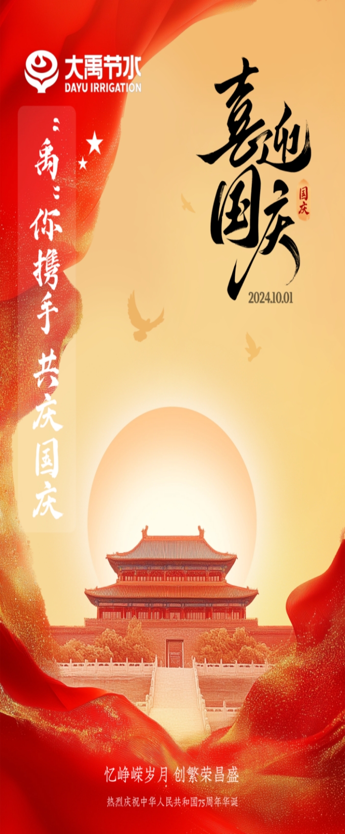 大禹节水集团作为节水行业领军企业,始终秉承“以大禹治水精神 做大禹节水事业”的企业精神,致力于推动水资源的高效利用和可持续发展。在过去的岁月里,我们见证了祖国的蓬勃发展,也经历了集团自身的成长与蜕变。在新的发展历程上,我们会继续发扬大禹治水的精神,勇于创新、敢于担当,为中国农业水利高质量发展贡献力量。