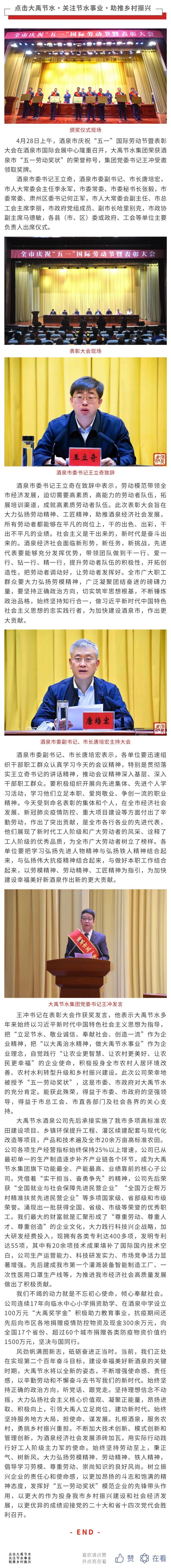大禹荣誉| 大禹节水集团获酒泉市“五一劳动奖状”荣誉称号
