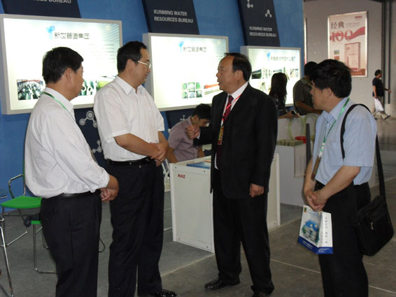 集团公司董事长王栋陪同参加博览会的昆明市领导参观公司“滴灌系统演示模型”