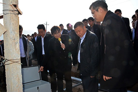 2月6日,大禹节水集团2017年年终多彩云南行业务考察学习团抵达项目学习考察第二站-元谋大型灌区丙间片11.4万亩高效节水灌溉项目区,先后对项目展示区、1.53万亩提升改造示范点、水源取水处、16#分水房、7#分水房、1#分水房进行了全面的学习考察。元谋公司董事长贾林、总经理张绍军分别就项目建设运营情况、初始水权分配机制、水价形成机制、农业节水激励和精准补贴机制、引入社会资本参与建设和运营机制、群众参与机制、工程管护机制等运营机制现场进行详细介绍。