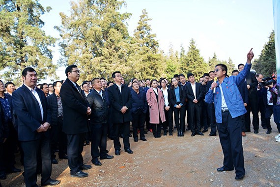 岳黎松书记在发言中对宾川县情总结出四气:"热气"著称、"土气"生财、"灵气"出名、"洋气"聚力。表示能干农业的人都是有情怀的人,要把农民的情怀深入到每个人的心里。希望大禹节水集团能扎根宾川,在农业及其他更多领域发挥产业及资源优势,实现宾川的高效节水灌溉全覆盖,推动宾川又好又快发展。