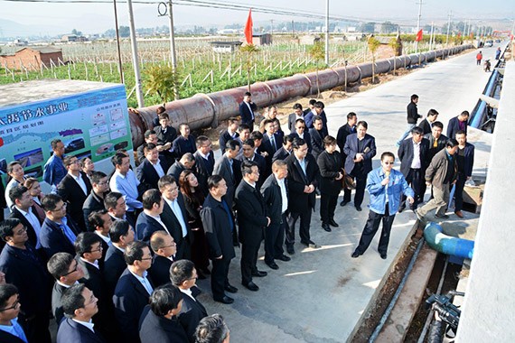 2月8日,大禹节水集团公司多彩云南行业务考察学习团现场考察了宾川县东干渠6万亩高效节水灌溉项目建设情况。宾川县人民政府副县长杨映红现场向公司考察团介绍了宾川县高原特色农业发展情况和全县高效节水工作开展情况;云南公司副总经理张志国现场介绍了项目建设基本情况。集团公司党委书记王冲、董事长王浩宇现场向大理州委常委、宾川县委书记岳黎松,宾川县人大常委会主任张成良及县政协主席陈源等宾川县四大班子领导汇报了项目建设情况。