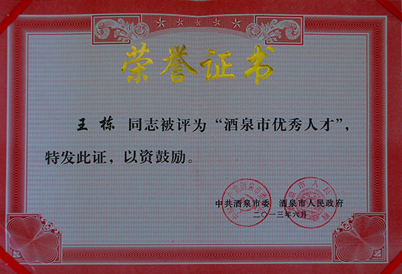 大禹节水集团董事长王栋被评为“酒泉市优秀人才”