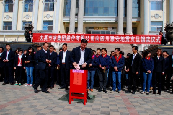 大禹节水集团党委书记、董事长王栋在第一时间作出向雅安灾区捐款20万元的重要指示,大禹节水集团总裁谢永生代表集团捐款