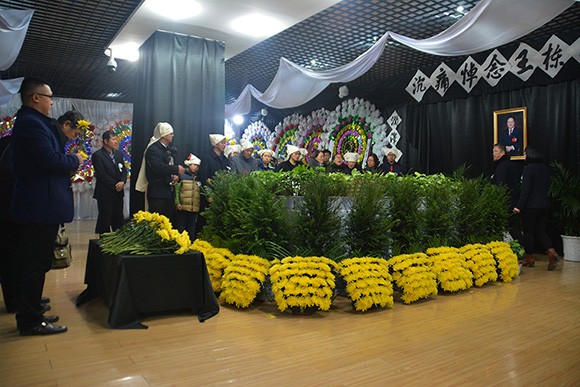 最后,参加遗体告别仪式的所有同志列队依次向王栋同志鞠躬,作最后告别,并瞻仰了王栋同志遗容,参加告别仪式各级领导亲切慰问了王栋同志的夫人、儿子、其弟及亲属,对王栋同志的逝世表示沉痛哀悼。愿这位为中国节水灌溉事业和大禹节水集团创立与发展做出卓越贡献的先生一路走好,千古永垂。