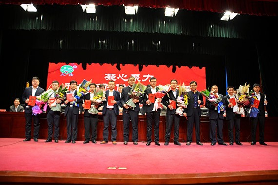 大禹节水集团公司党委书记王冲宣读了《关于对2017年各部门、 各子(分)公司经济承包合同及目标责任书年终兑现奖励的决定》,总裁谢永生、常务副总裁段山虎分别宣读了《关于表彰奖励2017年度先进集体、先进个人的决定》、《2017年年终考核首末位奖惩结果》,并向圆满完成2017年度经营任务的各单位和荣获2017年度先进集体、先进个人代表颁奖。