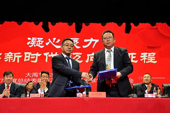 金鸡辞岁,瑞犬迎春。2月7日,大禹节水集团股份有限公司2017年终总结表彰暨2018计划签约大会在云南省楚雄州元谋县图书馆报告厅隆重召开,本次年会以"凝心聚力 开启新时代 迈向新征程"为主题,来自全国18家子分公司的全体中高层干部、2017年度先进集体、先进个人代表及部分职工代表,中国水利报社等社会各界同仁等共计350余人齐聚一堂、共同见证这一美好时刻。