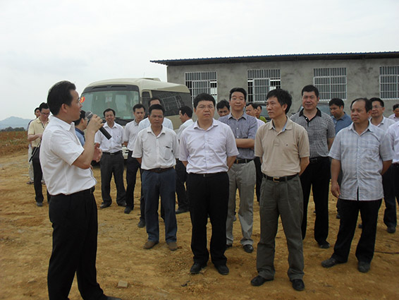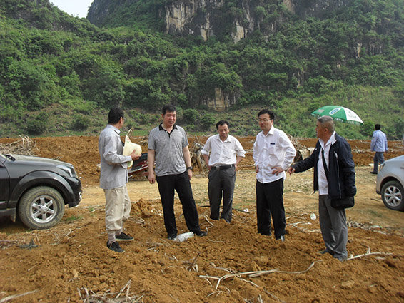水利部农水司司长王爱国一行在集团公司副董事长王冲、总裁谢永生、董事会秘书王光敏及广西公司总经理张战祥等陪同下在项目地实地考察地埋式滴灌应用情况