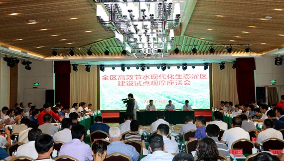 7月20日,宁夏高效节水现代化生态灌区建设试点观摩座谈会在吴忠市利通区召开。会议认真贯彻落实自治区第十二次党代会精神,观摩现代灌区建设试点,总结交流建设经验,并就全区高效节水现代灌区建设和农业水价综合改革工作进行安排部署。宁夏回族自治区农田水利基本建设指挥部副总指挥、水利厅厅长白耀华、副厅长郭浩、农牧厅副厅长赖伟利、吴忠市市长喜清江、水利厅办公室主任王岚海、规划计划处处长王景山、财务审计处处长王正良、农村水利处处长徐宁红、农建中心主任高宏、利通区政府区长李玉山、副区长杨有凯、利通区水务局局长杨汉清等领导参加观摩座谈。