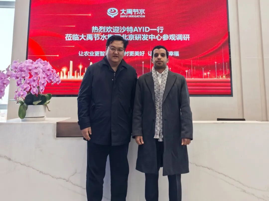 2026年1月4日,沙特投资部中国首席代表艾伊德(Ayid)先生莅临大禹节水集团北京研发中心考察座谈,就智慧农业、高效节水灌溉技术及中沙绿色合作前景开展深入调研与交流。大禹节水集团董事长王浩宇陪同交流。