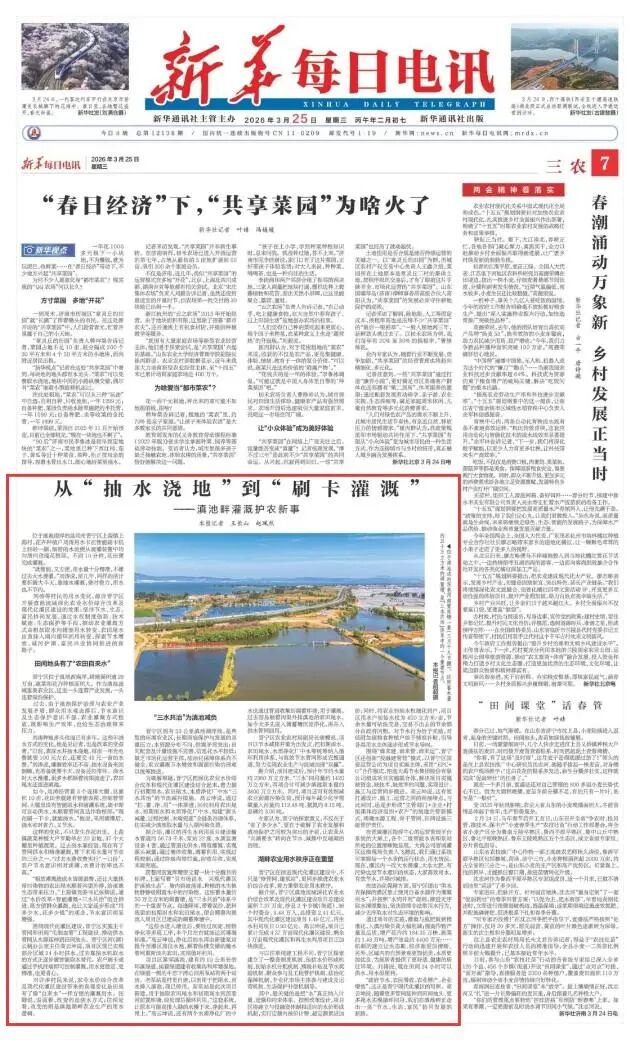 近日,新华每日电讯(新华社主办的全国性报纸)大篇幅登载原创文章《从“抽水浇地”到“刷卡灌溉”》,报道大禹集团在滇池畔的灌溉护农新事。文章被学习强国(中宣部主办学习平台)、云南水利厅官网、新华网、新京报APP、封面新闻等平台广泛传播。