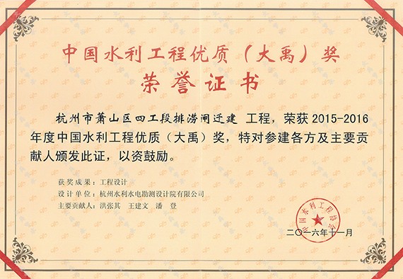 中国水利工程优质(大禹)奖