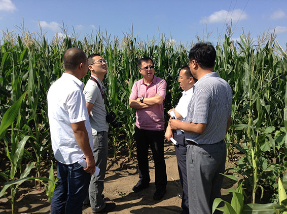 吉林省水利厅农水局王伦局长、吉林省水利厅节水协会孟庆民会长、韩有利秘书长,以及双辽市水利局领导一行,在长春公司总经理汪晓明陪同下实地调研试验田