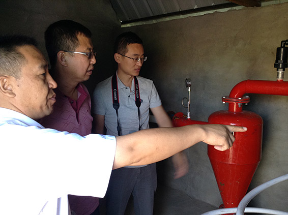 长春公司总经理汪晓明向王伦局长一行介绍试验田首部过滤系统设备
